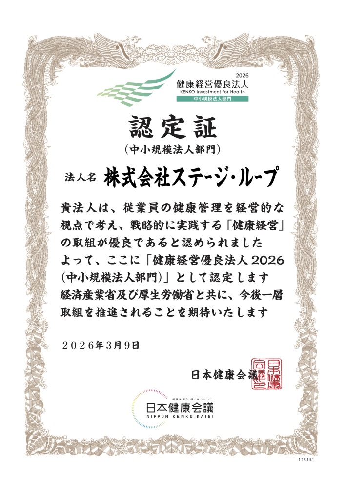 このたび弊社は、経済産業省が認定している「健康経営優良法人認定制度」より、「中小規模法人部門」における「健康経営優良法人2026」に認定されました。